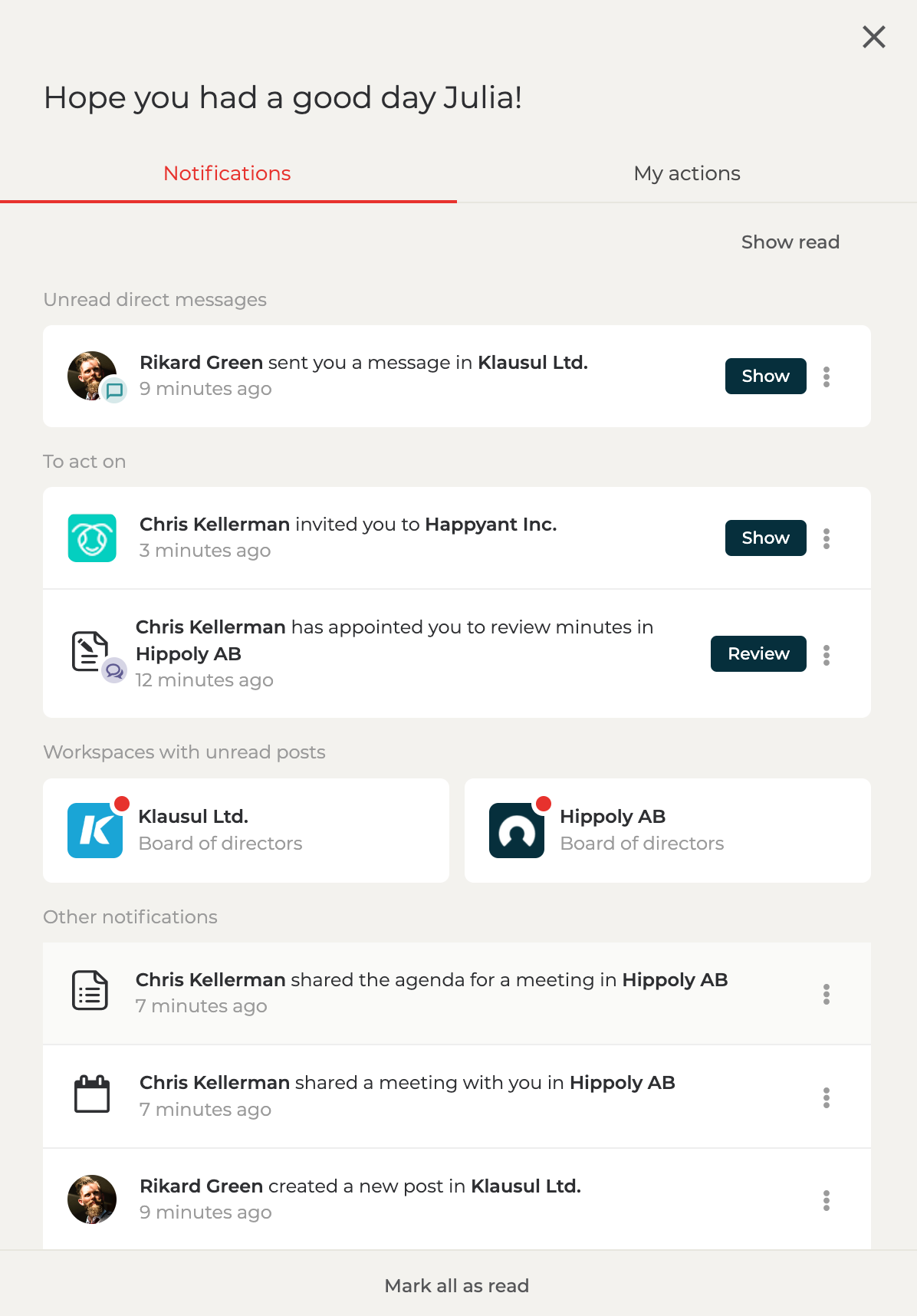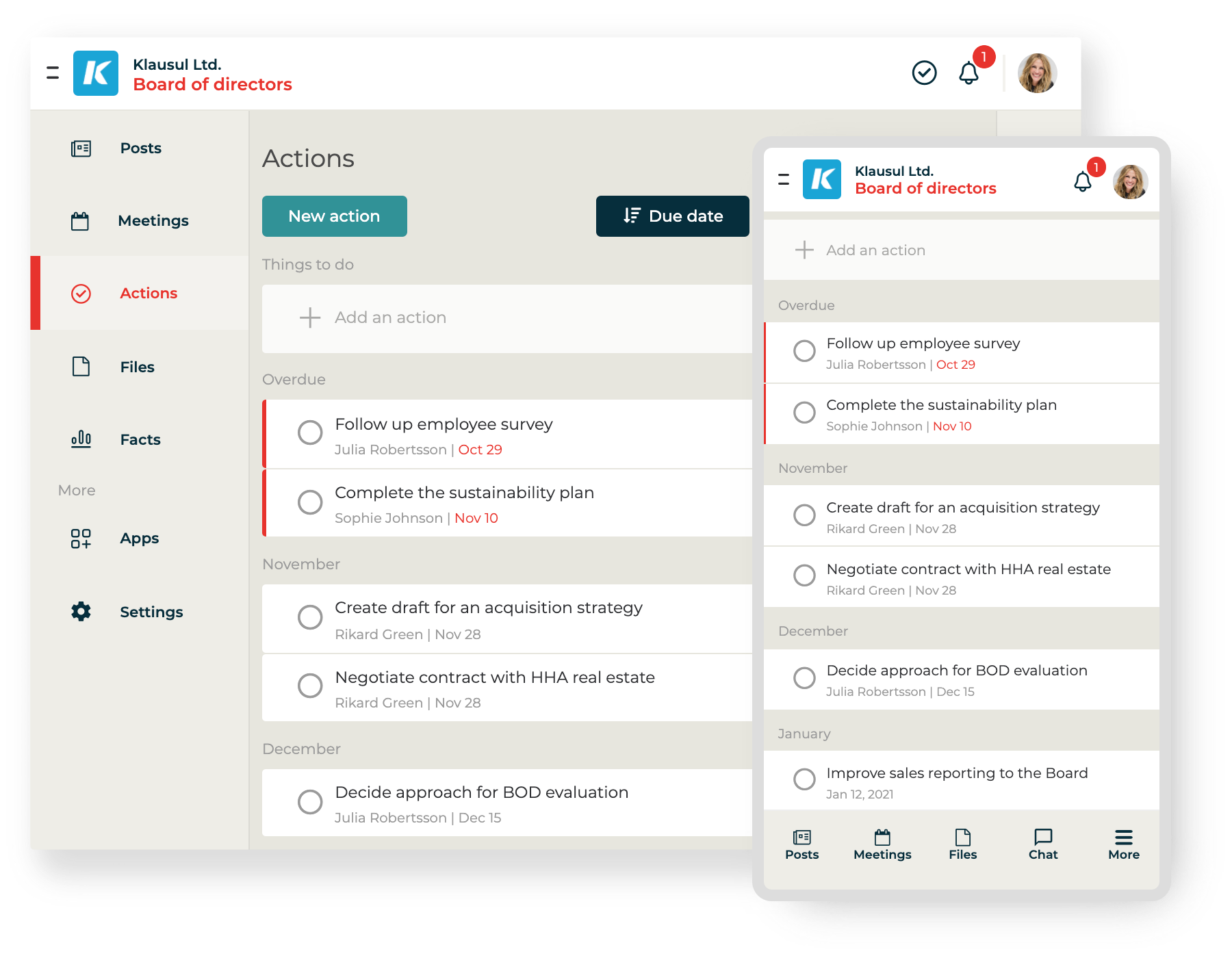 Hippoly’s iOS and Android apps, designed for both smartphones and tablets, ensure that all board members receive real-time alerts about critical tasks and priorities. Thanks to push notifications, you can rely on immediate attention to urgent questions or actions, guaranteeing swift and efficient handling.