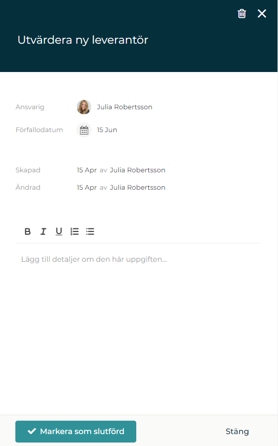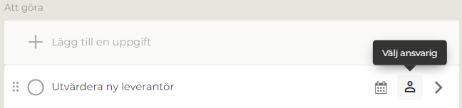 3. Lägg till vem som är ansvarig för uppgiften genom att klicka på personsymbolen och välj vem i teamet som ska tilldelas uppgiften.