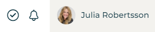 Öppna upp Mina uppgifter genom att klicka på cirkeln med bocken uppe i höger hörn.